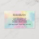 This business card features a hand painted watercolor design with your name and title surrounded by colourful clouds in shades of pink, yellow, blue, and green. The pretty whimsical design is perfect for someone working with children, or anyone who wants a bright cheerful look. Name and tag line on the front with contact info on the back.
