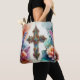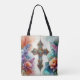 Colourful Watercolor Flowers And Cross Christian Tote Bag