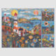 Colourful Watercolor Folk Art Light Houses Tissue Paper
