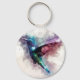 This is a keychain using a handmade design of a digital watercolor painting showing a hummingbird in flight.