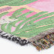 A quality printed throw has its advantages. This is a much finer weave throw than its loopier cousins, and though lighter, it is worth the investment for custom room accessorizing. The back is much prettier than the typical brown, and the fringe on the long sides very vivid, the selvage nicely done. Before photographing, I washed the throw in cold water, delicate, with a thicker woven throw the same size. On tumble dry low, this throw was dry in half the time as the other. This is a very practical quality if you use throws for furniture covers or to wrap up in frequently. The sleekness of the fabric makes it a great layer for accenting or protecting without the feeling of sitting on too much stuff. Perfect for napping or when you feel a light chill coming on. The color printing is beautiful and on this fabric, matched the design and color of my Photoshop image. This is an advantage for blending room fabrics and colors. The fringe on the short sides prints the colors from the design image and therefore varies from the side fringe. I streaked a white fractal line through the plaid pattern to give the illusion of weaving. This printed as crisp as an illusory thread, and put some white in the short side fringe, showing another advantage of print vs loomed- for artistic purposes, line lines, detail, and color integrity can be planned and preserved. My loomed throws have color limitations and more of a needlepoint texture. Print throws reproduce an exact image. The throw felt a little stiff straight out of the package, but this went away in the first delicate wash. Of course I searched the wash water for ink or bleeding and there was none.