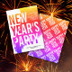 Colourful watercolor artistic New Year's eve party invitation. This modern invite showcases a colourful watercolor brush in yellow, orange, pink and purple with the text "New Year's Party". The back is covered with a pattern of the text "Happy New year" tiled colourful background.