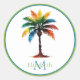 Colourful Watercolor Palm Tree Monogram Classic Round Sticker