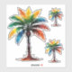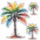 These cute tropical stickers feature brightly coloured palm trees in watercolor shades of blue, green, yellow and orange.