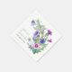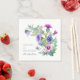 This lovely wedding paper napkin is adorned with a beautiful display of vibrant watercolor wildflowers. The bouquet consists of delicate blue and purple florals, accompanied by bluish green leaves that gracefully adorn the upper and right sections of the napkin. Adding a personal touch, the names of the happy couple and their special wedding date are elegantly incorporated into the design. This colourful and artistic napkin is the perfect addition to any wedding celebration, adding a touch of natural beauty and romance to the table setting. It is sure to impress guests and create a memorable atmosphere.