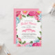 Elegant colourful flowers and leafs watercolors illustration wreath frame with reversible pink and white background, Bridal shower customisable template.