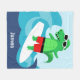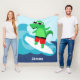 Have a super time with our Fun, Colourful, Surfing Alligator Fleece Blanket! This bright, bold, graphic features a cute alligator surfing on a large sea blue wave, all while wearing his cool sun glasses!. Personalise with your favourite beach-goers name and cosy up on a cool summer's night. Check out Benson Hall, on Zazzle, to see our many great designs and products! See ya later Alligator!