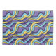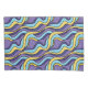 Colourful waves pillowcase with a pattern featuring seamlessly tiled funky abstract waves in yellow, blue and purple colours. This fun trippy geometric design is drawn in a retro modern style.