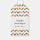 This custom gift tag features a pattern of wavy line squiggle stripes are fun in a rainbow of happy colours. The simple back text is easy to personalise for any occasion from holidays, to birthdays to special events.
