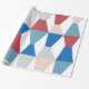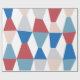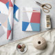 An original abstract design made up of columns or rows of wedge like shapes in alternating in colours and tones in a palette of five harmonious colours.