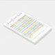 This weekly habit tracker features a colourful table design divided into 20 rows for habits in alternating pink, blue, lime, and white, 1 wide column to write your desired habit, and 7 narrow columns to put a mark for each day of the week. At the top right of the table is a blank template to put the date of the week you are tracking. Below the table is a blank template for notes. You can customise the font style and colour of the text, as well as the colour of the rows in the Design Tool.