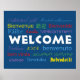 A fun and modern design that says Welcome in many foreign languages like German, Spanish and Italian!