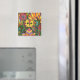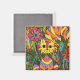 Colourful Whimsical Garden Cat Green Flowers Magnet