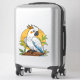 A vibrant cartoon-style cockatoo perched on a branch, featuring white plumage, blue wings, and a bold orange crest against a warm yellow circle. Bright, playful wildlife artwork suitable for branding and education.