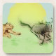 - Colourful original drawing of green & yellow, 6 Plastic Coasters Set, presenting Lion chasing a Buffalo.