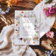 The invitation features a beautifully crafted rectangular frame that elegantly encases your baby shower details, providing a clean and sophisticated backdrop for clarity and style. Surrounding the frame is a vibrant array of hand-painted watercolor wildflowers, such as poppies, lavender and iris, in a kaleidoscope of colours, evoking the charm of a blooming meadow and adding a touch of whimsy and natural beauty.