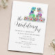 If you and your fiancé love dinosaurs here’s a fun dinosaur theme wedding invitation. Funny dinosaur bride and groom standing in a colourful watercolor wildflower meadow in purple pink blue yellow orange and green hue. Easy to personalise elegant script, just add the bride and grooms names, wedding date and all the details. Funny T-Rex bride and groom dino illustrations with modern whimsical typography script. Unique original artwork by artist Catherine Sweetman