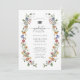 Colourful Wildflower Graduation Party Invitation. Set the tone for a breathtaking celebration with this invitation showcasing an elegant floral oval wreath of hand‐painted watercolor wildflowers rendered in dark blue, bright pink, blush pink, golden yellow, vibrant red, and sage green. A photo collage highlights cherished moments, while you can personalise the message, colours, and backgrounds to create an invitation that captures the magic of your milestone—make your celebration unforgettable!