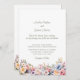 Celebrate your love with this vibrant spring wedding invitation featuring a watercolor bouquet of colourful wildflowers across the bottom. The clean white background and delicate script create a timeless yet fresh look, perfect for garden weddings, spring celebrations, or floral-themed events. Personalise the text with your wedding details and make a memorable first impression on your guests. This invitation pairs beautifully with coordinating RSVP cards, menus, and signage.