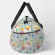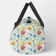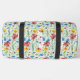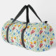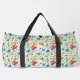 Large Duffle Bag in Brightly coloured wildflowers in various shapes and sizes scattered across a white background. The vibrant petals range from blues and green to red, orange and yellow.