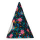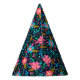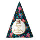 Fun, festive party hat featuring your photo and custom text encircled by a chic faux gold ring and set against a boho chic pink, blue, green, black wildflower pattern. Perfect for any age birthday party, bridal or baby shower, retirement party, graduation and more.