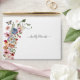 Colourful Wildflowers Graduation envelope. Elevate your mailings with this beautifully designed envelope featuring a coordinating return address and subtle hand‐painted boho wildflowers in dark blue, bright pink, blush pink, golden yellow, vibrant red, and sage green. The refined design creates a seamless look for your graduation invitations or thank you cards. Personalise the message, colours, and backgrounds to add an elegant, personal flair—make every detail a celebration!