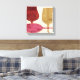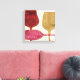 © Pela Studio / Wild Apple. Three wine glasses in different colours - red, gold and pink. The background is an off white col or with words written on it.