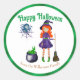 Colourful Witch and Spider Custom Name Halloween Classic Round Sticker