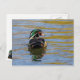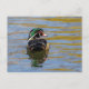 A distinctive image of a male wood duck as it floats on rippling water in soft morning light.