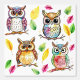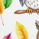 Colourful Woodland Owls and Leaves Watercolor Wallpaper