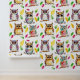 Cute watercolor owls and falling leaves ai illustration wallpaper in brown, pink, green, blue and yellow. Cute for a child's room or baby nursery or a rom in a cabin in the woods.
