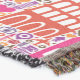 A quality printed throw has its advantages. This is a much finer weave throw than its loopier cousins, and though lighter, it is worth the investment for custom room accessorizing. The back is much prettier than the typical brown, and the fringe on the long sides very vivid, the selvage nicely done. Before photographing, I washed the throw in cold water, delicate, with a thicker woven throw the same size. On tumble dry low, this throw was dry in half the time as the other. This is a very practical quality if you use throws for furniture covers or to wrap up in frequently. The sleekness of the fabric makes it a great layer for accenting or protecting without the feeling of sitting on too much stuff. Perfect for napping or when you feel a light chill coming on. The color printing is beautiful and on this fabric, matched the design and color of my Photoshop image. This is an advantage for blending room fabrics and colors. The fringe on the short sides prints the colors from the design image and therefore varies from the side fringe. I streaked a white fractal line through the plaid pattern to give the illusion of weaving. This printed as crisp as an illusory thread, and put some white in the short side fringe, showing another advantage of print vs loomed- for artistic purposes, line lines, detail, and color integrity can be planned and preserved. My loomed throws have color limitations and more of a needlepoint texture. Print throws reproduce an exact image. The throw felt a little stiff straight out of the package, but this went away in the first delicate wash. Of course I searched the wash water for ink or bleeding and there was none.