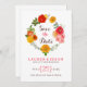 Save the date- colourful wreath of flowers. Customisable invitation template