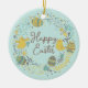 This beautiful ceramic ornament features a pastel yellow and light blue coloured design to celebrate the Easter holiday. The wreath is decorated with cute little chicks and colourful Easter eggs. On the backside is room to customise or personalise with your own text, family, or individual names. This ornament is a perfect and festive decoration gift for family or friends that they can hang on Spring tree branches to decorate their homes with to create a cheerful and festive Easter season vibe.