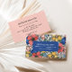 Colourful floral business card with a pattern of flowers in coral, blush, blue, and yellow. Eye catching vibrant business card with lots of flowers.