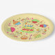 Say Happy Birthday and celebrate in style with a party with these fun and whimsy feminine Happy Birthday paper plates. The whimsy art features a birthday cake with candles surrounded with cupcakes cupcakes, whimsy words “Happy Birthday”, dots and streamers on a colourful yellow background. This original art is by fabric designer Phyllis Dobbs. Other colours are red, pink, yellow, orange and green. Coordinate with stickers and other products for a happy birthday party!