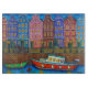 A vibrant and lively stylised night scene of Amsterdam's colourful, narrow houses along the canals on a cutting board by Lisa Lorenz© to liven up your kitchen.