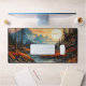This unique desk mat features an illustration of a late Autumn countryside landscape, at sunset. This item would be ideal for either home or office.