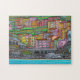 Colourful, Stylised painting of beautiful Manarola, Cinque Terre Popular Artist Lisa Lorenz. Now available on puzzle with matching gift box.