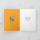 This card features towering trees in their spectrum of fall colours inset onto a pumpkin pie coloured background, and says, “Nature always wears the colours of the spirit. —Ralph Waldo Emerson” Inside, “May your spirit soar during this season of plenty, and throughout the year. Happy Thanksgiving.” Appropriate for anyone.