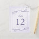 This beautiful Table Number card with purple scroll box and customisable number has matching lavender background for use with the Columbine Bouquet Wedding set.