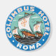 Old advertisement for Columbus Hotel, Roma. Has three ships sailing on an ocean