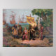 This is a vintage painting of Christopher Columbus landing in America originally produced in 1892.