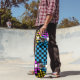 colured chequered deck skateboard