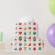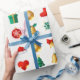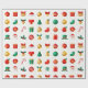 This design utilizes a range of bright, modern, and cheerful Christmas icons (Santa, bells, presents, ornaments) set against vibrant red and green backgrounds. The playful style immediately evokes joy, celebration, and festive spirit, making it highly appealing.