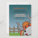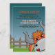 A fun barbecue invitation featuring a cow just peaking from the bottom of the card with a picket fence and grass background.