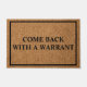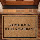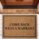 Come Back With A Warrant Custom Funny Doormat. What a cute country way to greet the police. Personalise this custom rustic burlap look doormat with your own text. Makes a great housewarming gift.