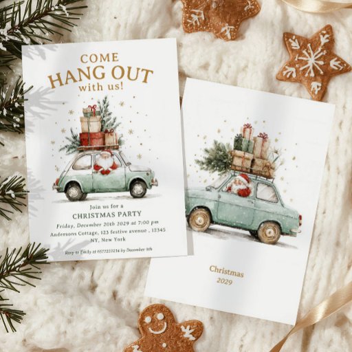 Come hang out Whimsical Santa car Christmas Party Invitation