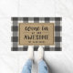 Add a welcoming touch to your front door with this cute and funny personalised doormat featuring a black and white buffalo plaid border. "Come in, we are awesome" appears in the centre, with your family name beneath.