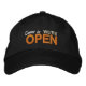 Come In We're Open on a fine custom embroidered baseball cap.